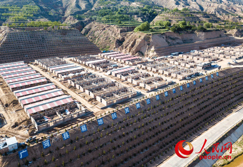 (若不是樓頂?shù)臉?biāo)牌提示,很難想象這樣整齊劃一的社區(qū)是扶貧搬遷安置點(diǎn)。人民網(wǎng) 張桂貴/航拍)