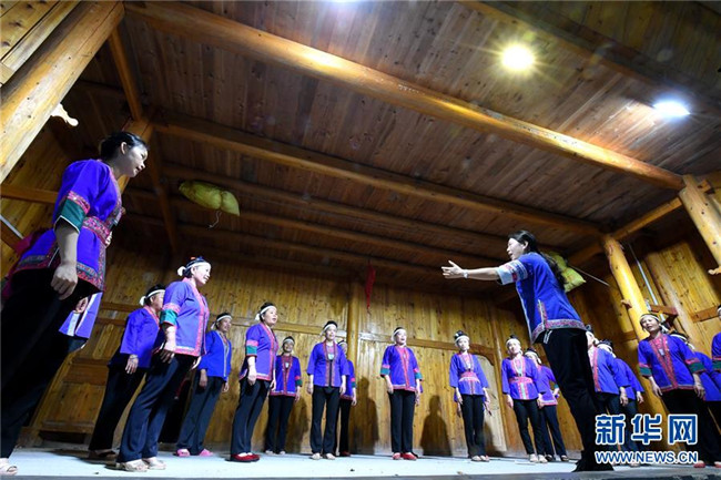 5月27日晚,在廣西柳州市三江侗族自治縣良口鄉(xiāng)燕茶村,吳純娟與村民在戲臺(tái)上排練侗族大歌。 今年42歲的吳純娟是廣西柳州市三江侗族自治縣文化館的一名文藝輔導(dǎo)員。她從小喜歡唱歌,工作后接觸并喜歡上侗族大歌,2005年起專門拜師學(xué)唱侗族大歌。如今,侗族大歌成為她主要輔導(dǎo)和傳承的音樂(lè)之一。今年3月中旬,她成為三江縣良口鄉(xiāng)燕茶村一名駐村工作隊(duì)員,侗族大歌是她扶貧的法寶。 燕茶村位于侗鄉(xiāng)大山深處的山腰上,村民們雖然熱愛(ài)歌舞,但卻無(wú)人會(huì)唱侗族大歌。吳純娟進(jìn)村后,當(dāng)即在村里開(kāi)設(shè)了侗族大歌免費(fèi)培訓(xùn)班,利用晚上及其他工作之余的時(shí)間教村民唱侗族大歌,受到村民歡迎。如今,燕茶村專門成立“侗族大歌文藝隊(duì)”,隊(duì)員從一開(kāi)始的20人迅速發(fā)展到33人。村部會(huì)議室、村里的戲臺(tái)、還有山上的千畝茶園……他們的歌聲幾乎傳遍了燕茶村的每個(gè)角落。 “這段時(shí)間,吳老師還利用休息時(shí)間教學(xué)校老師和學(xué)生唱侗族大歌。”燕茶村燕子小學(xué)老師楊雪連說(shuō),學(xué)校里從來(lái)沒(méi)有音樂(lè)老師,吳老師在學(xué)校里開(kāi)班,師生們學(xué)習(xí)熱情也非常高。 吳純娟說(shuō):“每首侗族大歌歌唱的都是自然、勞動(dòng)和愛(ài)情之美,傳承民族文化的同時(shí),我更希望激發(fā)貧困山區(qū)群眾對(duì)美好生活的向往,提高自信,共同脫貧致富。”據(jù)了解,侗族大歌是侗族地區(qū)一種多聲部、無(wú)指揮、無(wú)伴奏、自然和聲的原生態(tài)音樂(lè)。2005年,侗族大歌被列入我國(guó)第一批非物質(zhì)文化遺產(chǎn)名錄,2009年被列入世界人類非物質(zhì)文化遺產(chǎn)代表作名錄。