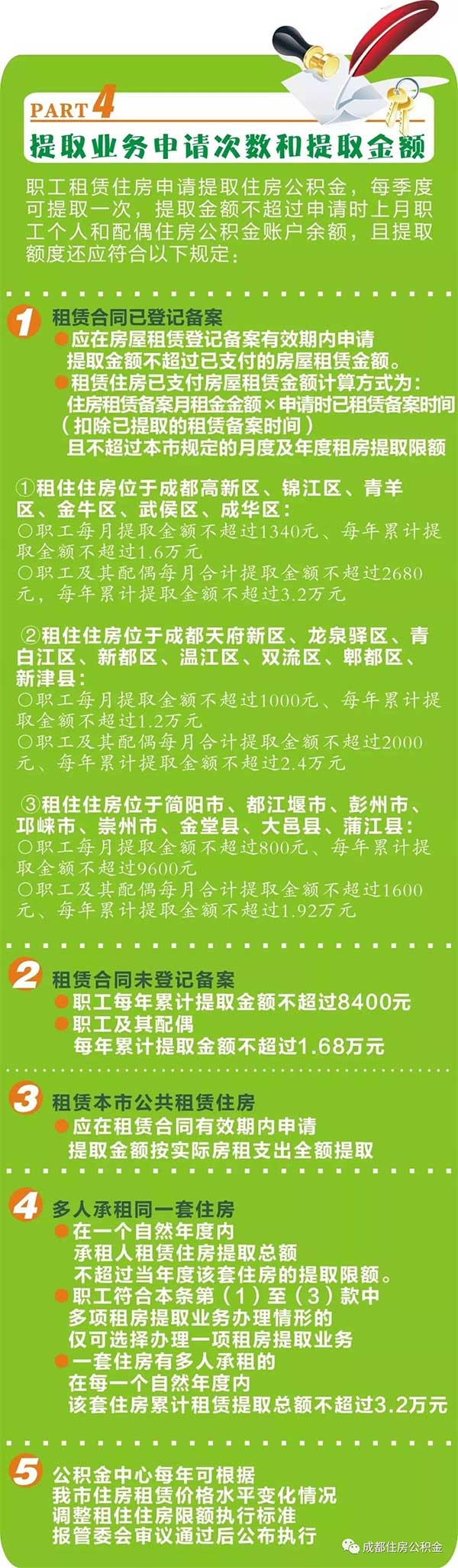 新修訂的《成都住房公積金提取管理辦法》在租房提取方面有哪些變化?申請租房提取的條件是什么?租房提取可提取的額度是多少?今日,成都住房公積金管理中心對相關(guān)問題進(jìn)行了梳理解答。