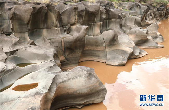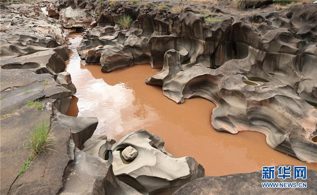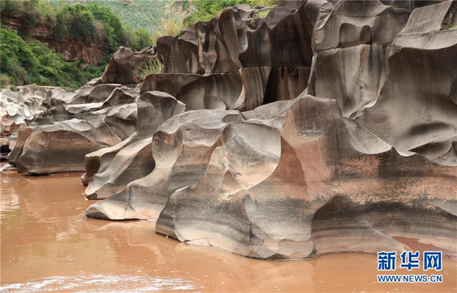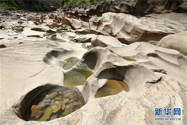這是6月16日拍攝的四川省會東縣鲹魚河鐵柳鎮(zhèn)火石村段的壺穴地貌。新華社記者江宏景攝