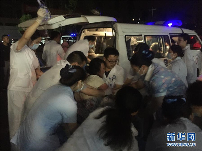6月18日,在長(zhǎng)寧縣中醫(yī)院,醫(yī)務(wù)人員救治地震中的傷者。新華社發(fā)(萬(wàn)敏攝)
