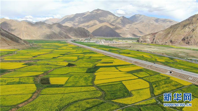 7月2日在拉薩市堆龍德慶區(qū)德慶鄉(xiāng)拍攝的油菜花田。近日,西藏各地的油菜花盛開,呈現(xiàn)出生機(jī)勃勃的夏日美景。新華社記者李鑫攝
