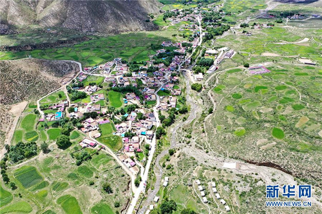 鳥瞰達(dá)東村景區(qū)(7月20日無人機拍攝)。西藏拉薩市柳梧鄉(xiāng)達(dá)東村是一個千年古村,也曾是一個貧困村。近年來,依托秀美的自然風(fēng)光、深厚的歷史文化和淳樸的風(fēng)土人情,當(dāng)?shù)卣畬嵤┪幕糜萎a(chǎn)業(yè)精準(zhǔn)扶貧,使達(dá)東村蛻變成為鄉(xiāng)村旅游勝地。新華社記者普布扎西攝