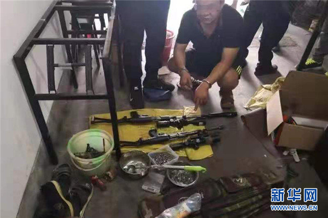 圖為繳獲的槍支子彈。新華網(wǎng)發(fā)(重慶兩江新區(qū)警方供圖)