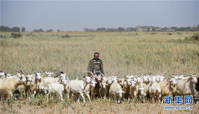 牧羊人買買提吐爾迪·肉孜在塔里木河下游的一片草場放牧(8月24日攝)。 新華社記者 阿曼 攝