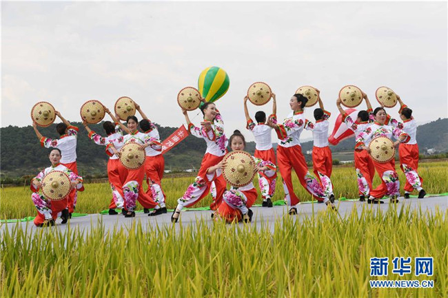 金秋時(shí)節(jié),云南省尋甸回族彝族自治縣在七星鎮(zhèn)魯古村舉行慶祝豐收活動(dòng)。 新華社記者 楊宗友 攝