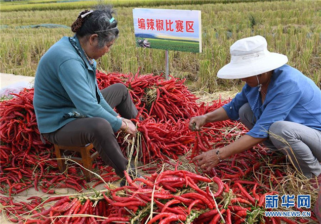9月15日,云南尋甸回族彝族自治縣七星鎮(zhèn)魯古村的農(nóng)婦在參與編辣椒比賽。