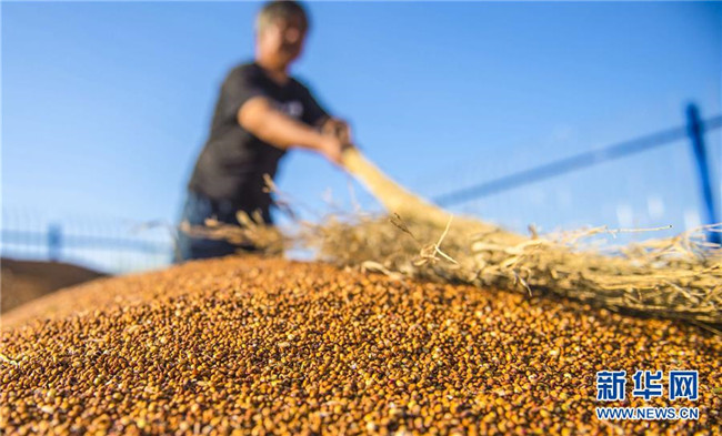 10月7日,在棗強(qiáng)縣肖張鎮(zhèn)西趙莊村,村民在清除高粱中的雜質(zhì)。 新華社記者 李曉果 攝