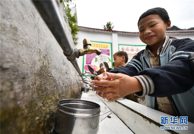在廣西大化瑤族自治縣板升鄉(xiāng)八好小學(xué),同學(xué)們?cè)谟米詠硭床途撸?1月13日攝)。 新華社記者 黃孝邦 攝
