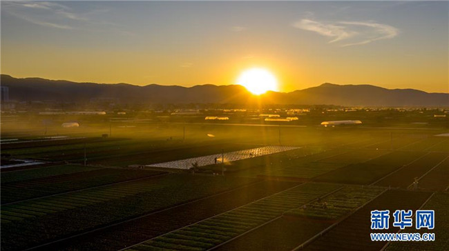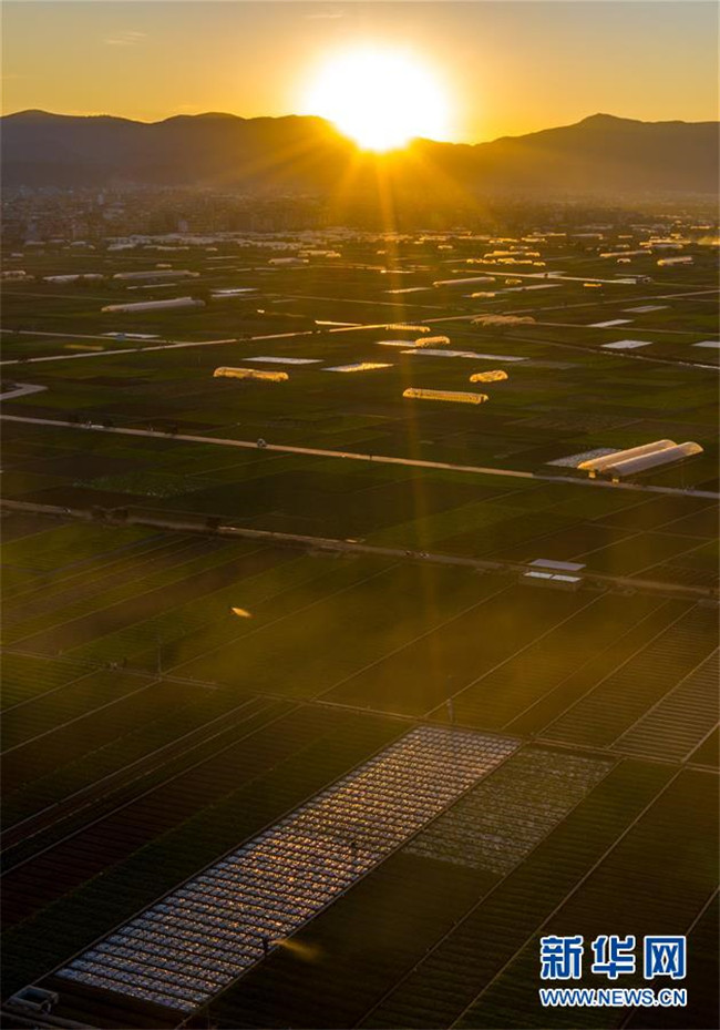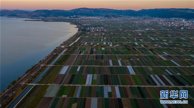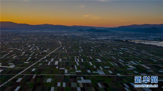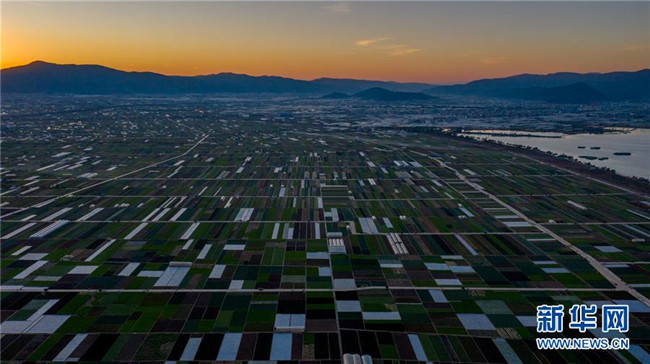 這是云南省玉溪市通??h的田園風(fēng)光(11月23日無(wú)人機(jī)拍攝)。初冬時(shí)節(jié),云南省玉溪市通海縣風(fēng)景秀麗,山巒、湖水與農(nóng)田組成了一幅美麗的田園詩(shī)畫(huà)卷。新華社記者胡超攝