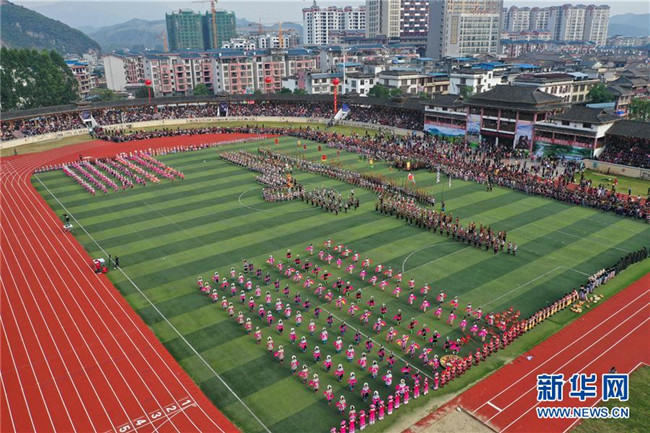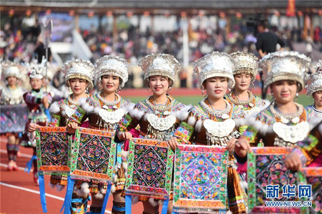 當(dāng)日,廣西融水苗族自治縣第十九屆蘆笙斗馬節(jié)開幕。本屆蘆笙斗馬節(jié)的內(nèi)容包括少數(shù)民族非遺文化展演、蘆笙舞比賽、扶貧產(chǎn)品展、美食節(jié)大賽、水上表演等民族特色活動。 新華社記者 黃孝邦 攝