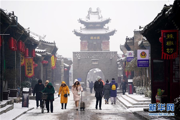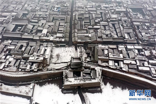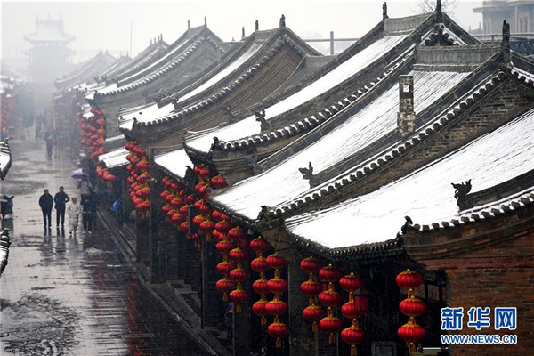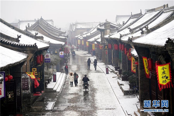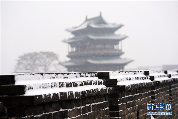當(dāng)日,山西省平遙縣迎來降雪,雪中的平遙古城銀裝素裹,美景如畫。平遙古城是目前中國(guó)保存最完整的古代縣級(jí)城池之一,1997年被列入世界文化遺產(chǎn)名錄。新華社記者詹彥攝