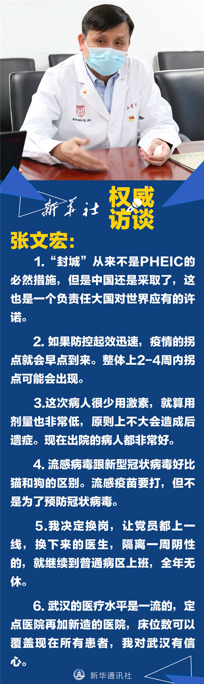 近日,上海醫(yī)療救治專家組組長、復(fù)旦大學(xué)附屬華山醫(yī)院感染科主任張文宏面對記者采訪說的這些話,使他成為網(wǎng)民心中的“硬核”醫(yī)生。1月31日,張文宏在接受新華社記者的專訪時表示,疫情來了,堅(jiān)守崗位是醫(yī)生的職責(zé)所在。