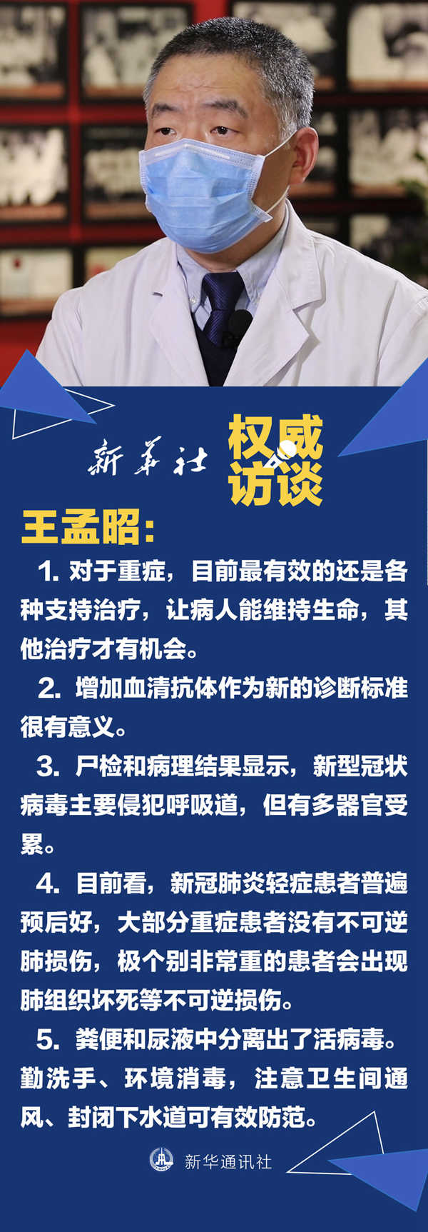 國家衛(wèi)健委近日發(fā)布《新型冠狀病毒肺炎診療方案(試行第七版)》。關于新版診療方案里加入的危重癥、重癥“預警指標”能降低病亡率嗎?血清抗體檢測能解決核酸“假陰”問題嗎?糞便和尿液里的病毒怎么防控?針對這些問題,新華社記者專訪了北京協(xié)和醫(yī)院呼吸與重癥醫(yī)學科主任王孟昭,一起來了解一下吧。