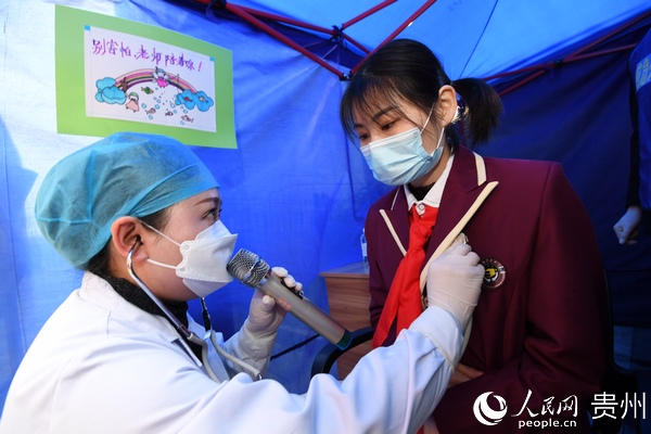 “學(xué)生進(jìn)校之前,要對學(xué)生和全體教職員工建起一人一檔的健康檔案,了解學(xué)生和他的家庭成員以及親密接觸人員的健康狀況,進(jìn)行逐一排查。到學(xué)生進(jìn)校的時候,對每一位學(xué)生,每一位教職員工都要進(jìn)行體溫檢測,還要讓他們掃‘貴州健康碼’,了解學(xué)生的行蹤和健康狀況,保障學(xué)生在學(xué)校里面健康學(xué)習(xí)。”宋旗學(xué)校校長陳孝勇說。