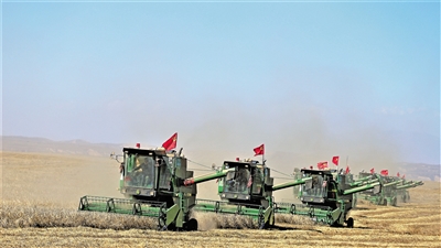 機(jī)械化收割青稞。資料圖片。張春云/攝