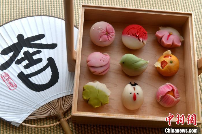 據(jù)介紹,和果子,是一種日式佐茶點(diǎn)心,它的外皮由豆子、糖、糯米等食材制成,內(nèi)餡以五谷果蔬為原料。和果子的制作原料取自自然,外皮上鮮艷的色彩均由可食用的植物色粉調(diào)制而成。
