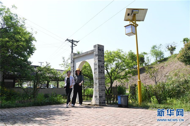 4月29日,在重慶忠縣“三峽橘鄉(xiāng)”田園綜合體內(nèi),工作人員從特色民宿前的院壩走過。新華社記者 唐奕 攝