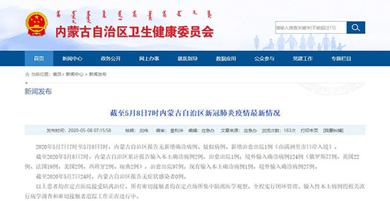 截至2020年5月7日24時(shí),內(nèi)蒙古自治區(qū)報(bào)告無癥狀感染者0例。