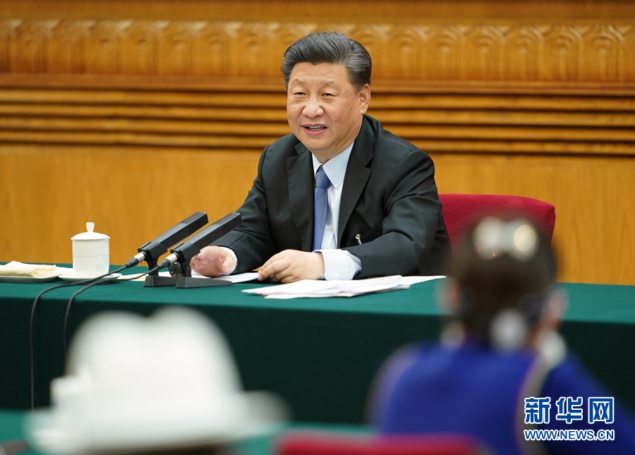 5月22日,中共中央總書記、國(guó)家主席、中央軍委主席習(xí)近平參加十三屆全國(guó)人大三次會(huì)議內(nèi)蒙古代表團(tuán)的審議。 新華社記者 鞠鵬 攝