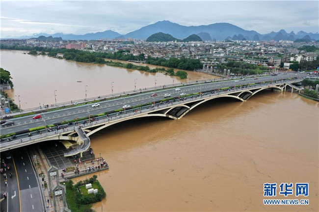受持續(xù)強降雨影響,漓江桂林水文站于6月9日12時30分出現(xiàn)146.49米的洪峰水位,超警戒水位0.49米。
