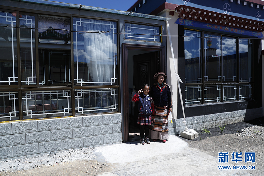 白瑪和她的媽媽在家門(mén)口合影。新華網(wǎng)記者焦鵬 攝