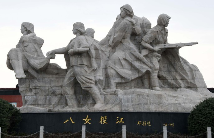 她們是東北抗日聯(lián)軍第5軍婦女團(tuán)的政治指導(dǎo)員冷云,班長(zhǎng)胡秀芝、楊貴珍,戰(zhàn)士郭桂琴、黃桂清、王惠民、李鳳善和被服廠廠長(zhǎng)安順福。1938年10月,該部在牡丹江地區(qū)烏斯渾河渡口與日偽軍千余人遭遇。已行至河邊準(zhǔn)備渡河的婦女團(tuán)8名成員,為掩護(hù)大部隊(duì)突圍,毅然放棄渡河,在冷云率領(lǐng)下,分成3個(gè)戰(zhàn)斗小組,與日偽軍展開激戰(zhàn)。她們主動(dòng)吸引日偽軍火力,使部隊(duì)主力得以迅速擺脫敵人的攻擊,但她們卻被敵人圍困于河邊。在背水作戰(zhàn)至彈盡的情況下,面對(duì)日偽軍逼降,女戰(zhàn)士們誓死不屈。她們毀掉槍支,挽臂涉入烏斯渾河,高唱著《國(guó)際歌》,集體沉江,壯烈殉國(guó)。犧牲時(shí),她們年齡最大的冷云23歲,最小的王惠民才13歲。