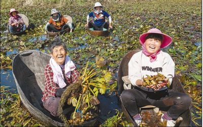 安徽省宣城市宣州區(qū)朱橋鄉(xiāng)渾水村,村民們正在采收菱角。這里是典型的水鄉(xiāng),產出的菱角品質極佳。通過種植菱角,每位村民可增收4000多元。 |