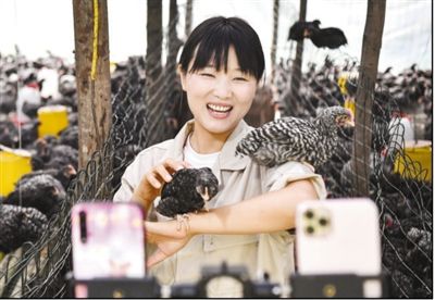 陜西省商洛市丹鳳縣寺坪鎮(zhèn)寺坪村網絡主播李萌在直播介紹自家養(yǎng)的蘆花雞。 |