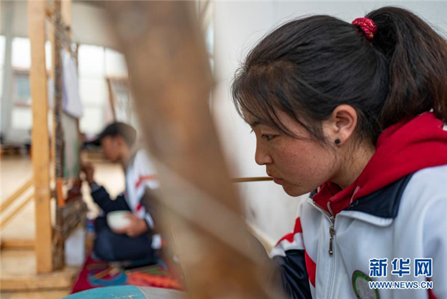 近年來,西藏大力發(fā)展現(xiàn)代職業(yè)教育,為打贏脫貧攻堅(jiān)戰(zhàn)提供了技能保障。作為非物質(zhì)文化遺產(chǎn)傳承人,88歲的嘎瑪?shù)吕赵诓际锌ㄈ魠^(qū)嘎瑪鄉(xiāng)成立了民族手工藝培訓(xùn)基地,使民族手工藝從家族作坊式的生產(chǎn)向集中生產(chǎn)轉(zhuǎn)變。精湛的手工藝品逐漸走出了山溝,也帶動(dòng)群眾走上了致富路。目前,嘎瑪?shù)吕展灿袑W(xué)員460名,其中112名曾是建檔立卡貧困戶,去年人均年收入達(dá)到20萬元左右。新華社記者 普布扎西 攝