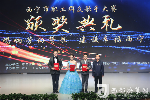 西部決策網(wǎng)訊 11月13日下午,“中國夢•勞動(dòng)美——唱響勞動(dòng)贊歌•建設(shè)幸福西寧”西寧市職工群眾歌手大賽正式落下帷幕,本次比賽由市總工會(huì)、團(tuán)市委、市婦聯(lián)、市文聯(lián)、市殘聯(lián)、市工商聯(lián)、市科協(xié)、市紅十字會(huì)、市廣播電視臺聯(lián)合主辦,市五一工人文化宮、市職工群眾業(yè)余藝術(shù)團(tuán)承辦,來自全市各行各業(yè)職工群眾代表300余人參加了頒獎(jiǎng)典禮。同時(shí)頒獎(jiǎng)典禮現(xiàn)場采取直播的方式,獲得13.5萬次點(diǎn)擊、4.1萬個(gè)點(diǎn)贊。