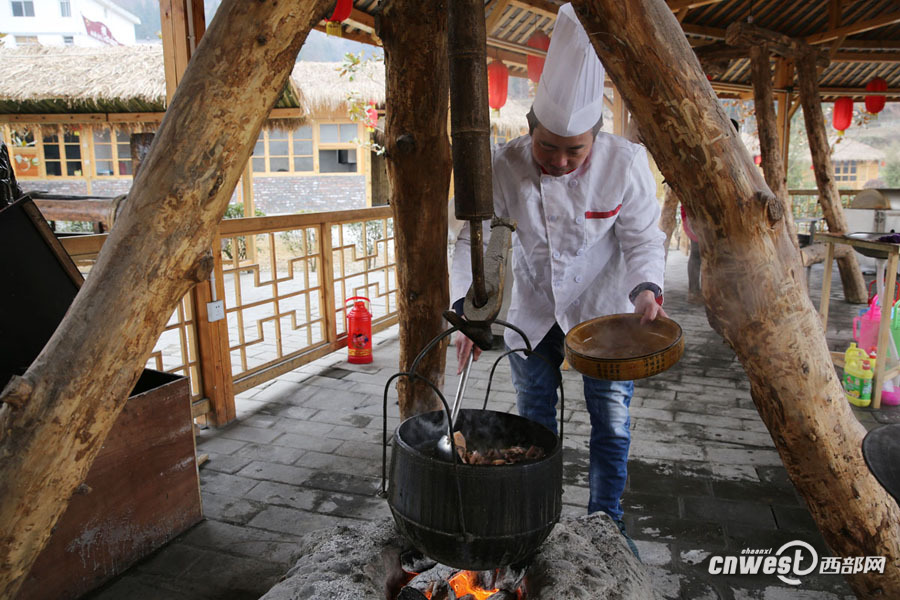 70后劉東以前在外地做廚師,現(xiàn)在被請到作坊小鎮(zhèn),劉東拿手的是當?shù)靥厣蹂?,吊鍋燉臘豬蹄蓮菜是當?shù)氐囊坏烂朗场?/span>