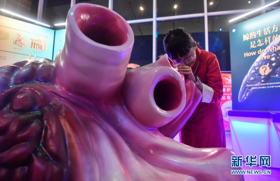 在西藏自治區(qū)自然科學(xué)博物館,一名拉薩市實(shí)驗(yàn)小學(xué)的學(xué)生在《鯨奇世界》海洋主題巡展上觀看鯨魚心臟模型(10月30日攝)。來自上??萍拣^的海洋主題巡展《鯨奇世界》是2020年科技部“科普援藏”系列活動之一。新華社記者 晉美多吉 攝