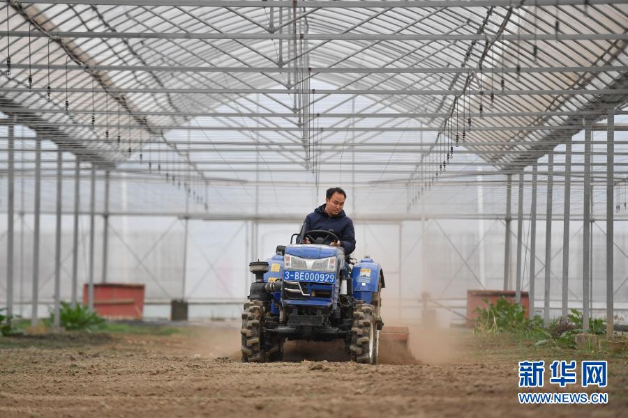 3月1日,工人在浙江省湖州市吳興高新區(qū)靈糧農(nóng)場的大棚內(nèi)駕駛旋耕機(jī)進(jìn)行翻耕。 新華社記者 黃宗治 攝