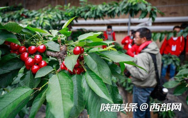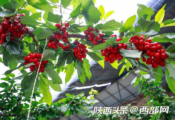 在櫻桃棚內(nèi),紅色的櫻桃一簇一簇簇?fù)碓跇渖希诰G油油的樹葉間顯得嬌艷欲滴。路寶告訴記者,子長的櫻桃可以趕在其他產(chǎn)地的櫻桃未上市前售賣,因此市場行情好,加上保存期長,適合現(xiàn)代物流的發(fā)展,從而產(chǎn)生了比較好的收益。“我們這個(gè)櫻桃可以在其他櫻桃還沒有上市的時(shí)候,借助現(xiàn)代物流賣到全國各地,甚至可以賣到櫻桃的主產(chǎn)區(qū)去。”