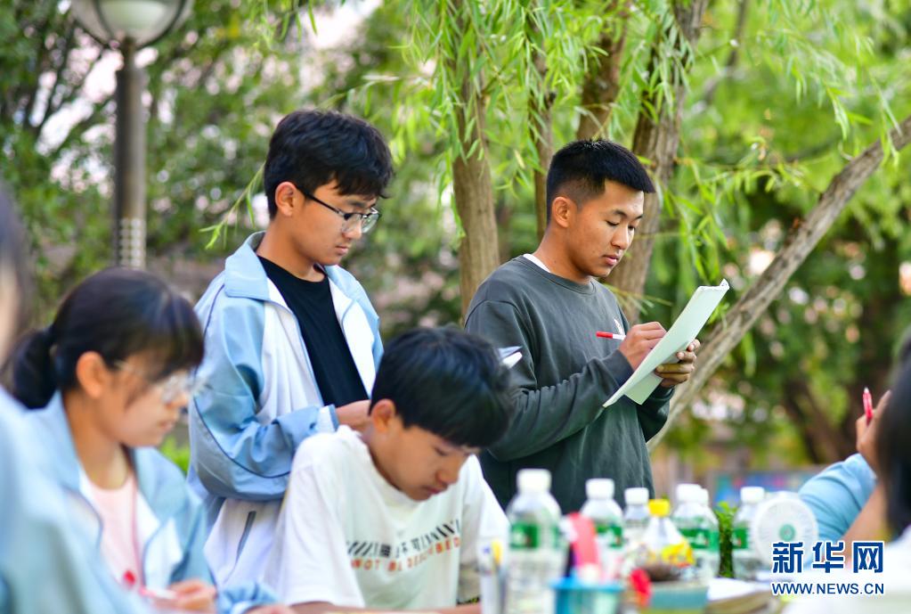 記者在這個特殊的“帳篷課堂”看到,學(xué)生們有的正在集中做著卷子,有的在復(fù)習(xí)課文,老師在一旁耐心講解。遠(yuǎn)處,空置的教學(xué)樓懸掛著條幅,上面寫著“用拼搏的汗水灌注無悔的高三路 考前不怕 考后不悔”。