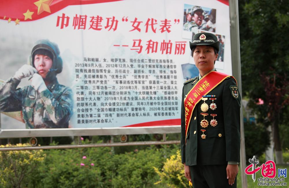 2020年,在中國人民解放軍建軍93周年之際,中央宣傳部、中央軍委政治工作部聯(lián)合發(fā)布13位“最美新時(shí)代革命軍人”。來自新疆軍區(qū)某合成團(tuán)坦克二連政治指導(dǎo)員馬和帕麗獲此稱號。