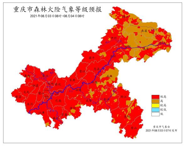 預(yù)計未來24小時,重慶市大部地區(qū)森林火險氣象條件等級極高,須嚴密防范,林區(qū)須加強火源管理。