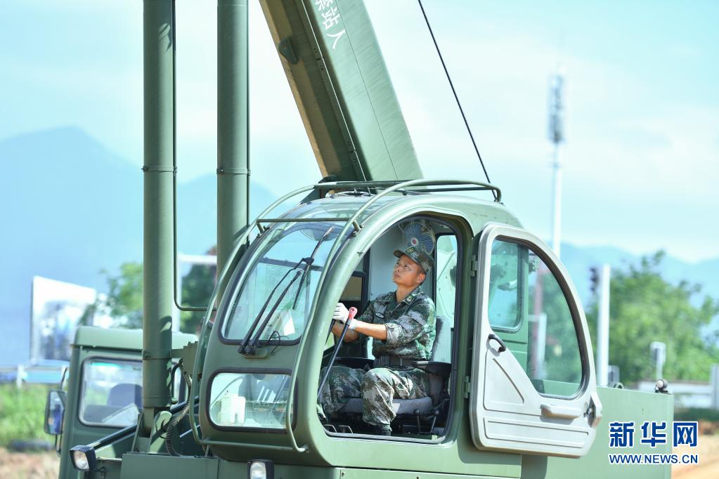戰(zhàn)略支援部隊某大隊一級軍士長高玉華操作工程機械(7月23日攝)。 新華社記者 陳澤國 攝