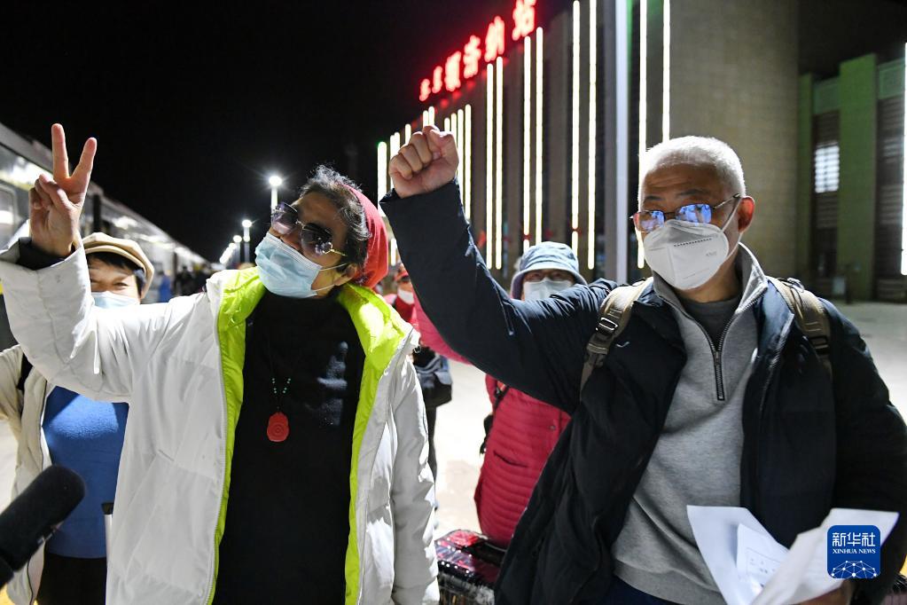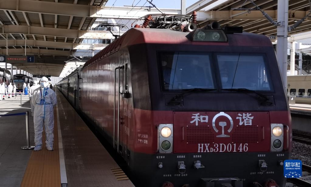 10月30日,載有額濟(jì)納旗滯留游客的列車(chē),抵達(dá)鄂爾多斯火車(chē)站。新華社發(fā)