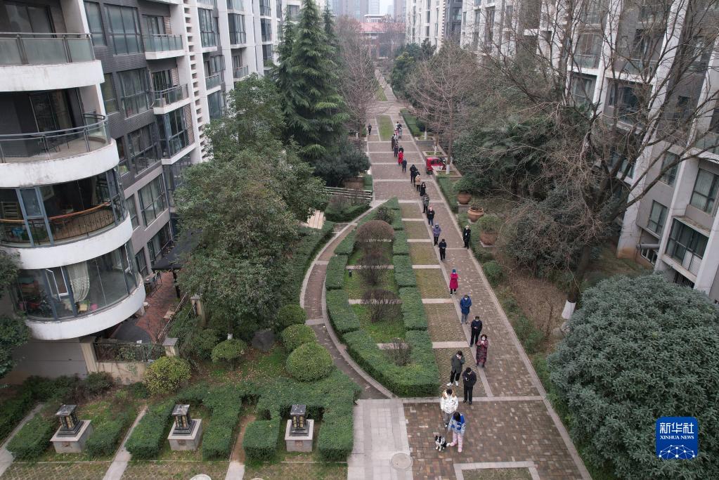 12月23日,在西安一小區(qū),居民排隊(duì)進(jìn)行核酸檢測(cè)(無(wú)人機(jī)照片)。新華社記者 邵瑞 攝