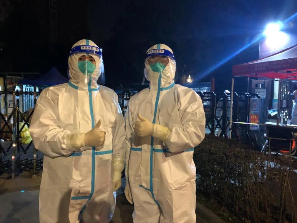 他們幫助搭建第二天核酸篩查的場地