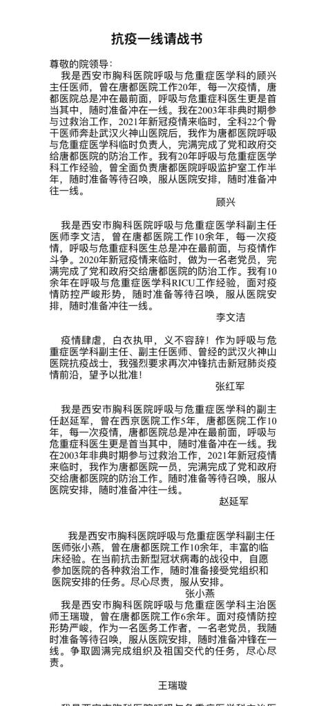 遞交“請戰(zhàn)書”