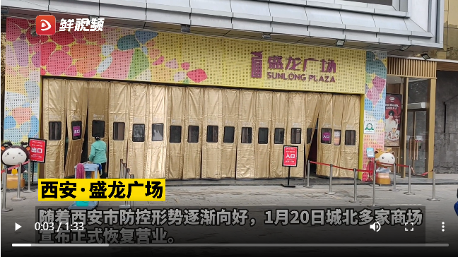 華商網(wǎng)訊(記者 何媛 鐘夢(mèng)哲)隨著西安本輪疫情形勢(shì)逐漸好轉(zhuǎn),西安市逐步降級(jí)社會(huì)面管控措施。伴隨著復(fù)工復(fù)產(chǎn)的有序推進(jìn),商貿(mào)業(yè)也做出了快速響應(yīng)——1月20日,盛龍廣場(chǎng)、龍首印象城、大明宮萬(wàn)達(dá)、漢神購(gòu)物廣場(chǎng)等商業(yè)綜合體已恢復(fù)營(yíng)業(yè)。