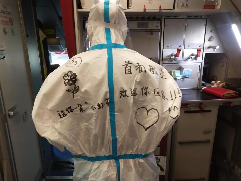 執(zhí)行定制航班的首都航空空乘人員。