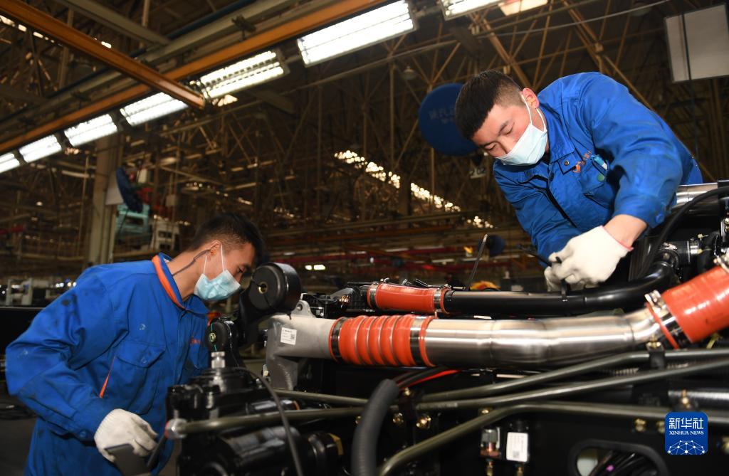 1月20日,工人在陜西汽車控股集團有限公司總裝車間進行重型卡車裝配。新華社記者 李一博 攝