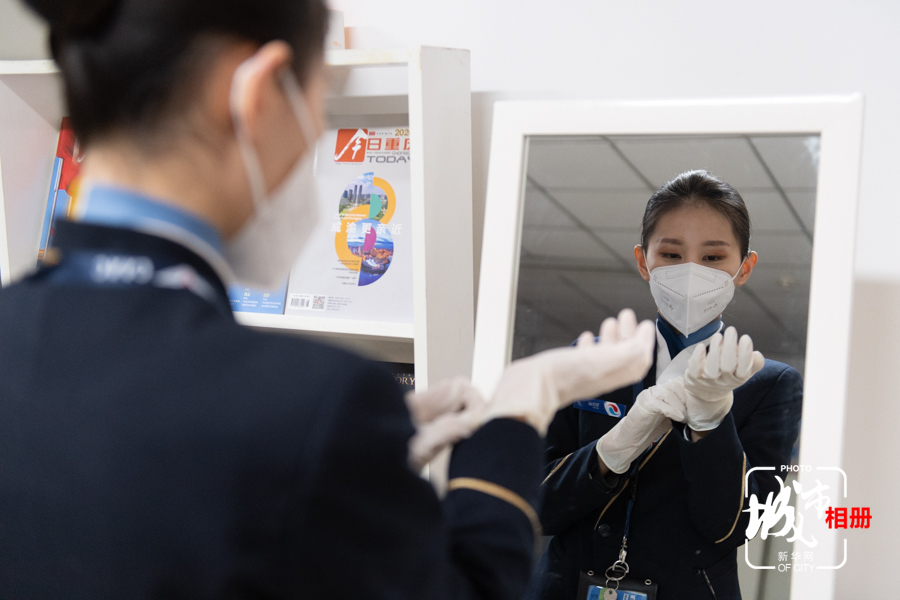 回憶新冠肺炎疫情第一年的春運(yùn),賀佳麗說(shuō),空乘需要直接接觸過(guò)往人員,最初還是很擔(dān)心,但是為了守好這道安全“關(guān)”,同事們都拼盡全力。新華網(wǎng) 耿駿宇 攝 陳雨 文