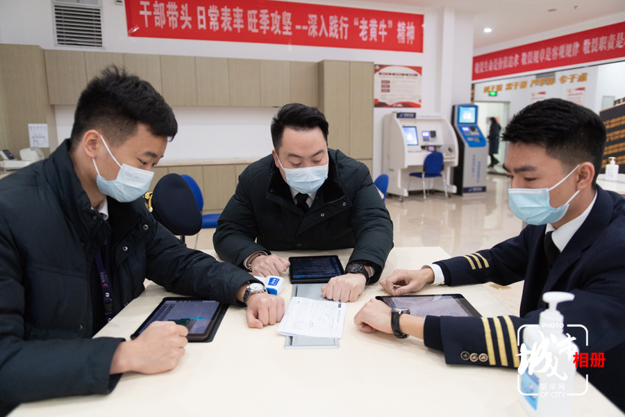 今年是劉曉周第一次參與春運(yùn)。每一次出發(fā)前,劉曉周都要學(xué)習(xí)最新的個(gè)人防護(hù)知識(shí)和旅客疫情應(yīng)急處置流程,同時(shí)還要充分了解航班始發(fā)地、經(jīng)停地、目的地機(jī)場(chǎng)防疫要求。新華網(wǎng) 耿駿宇 攝 陳雨 文