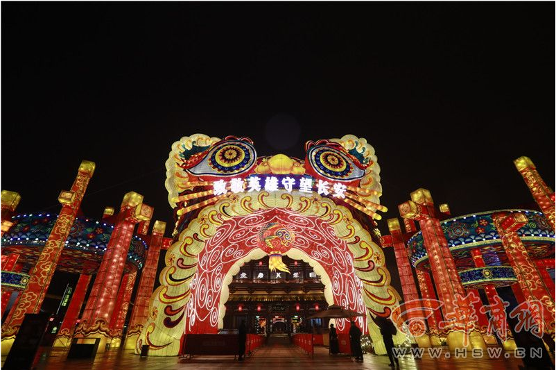 西安城墻永寧門南廣場上,“龍飛鳳舞耀長安”和“祥和新春”燈組交織出一幅逐夢山河萬里的盛世畫卷,共祝祖國繁榮昌盛,續(xù)寫新春華章。