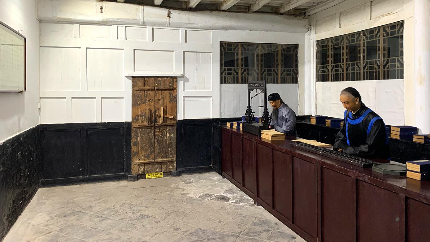 △日昇昌記內,還原了票號當年對外營業(yè)的柜房環(huán)境。(總臺央視記者 段德文拍攝)